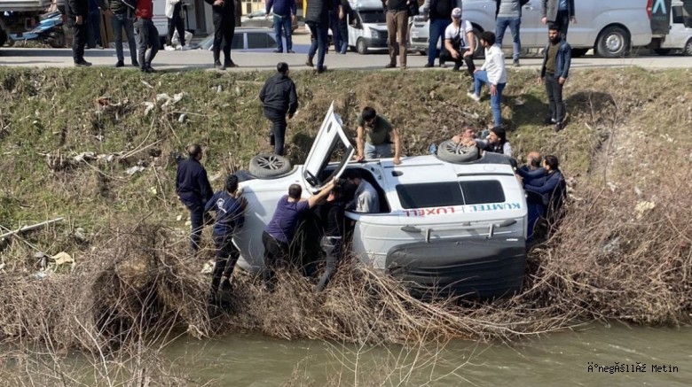 Kadın sürücü idaresindeki hafif ticari araç, kontrolden çıkarak dereye devrildi.
