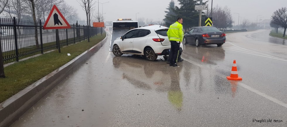 Meydana gelen kazada otomobil kontrolden çıkarak yola paralel şekilde durdu.