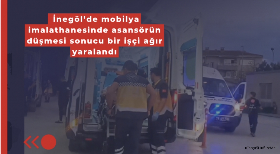 İnegöl’de mobilya imalathanesinde yük asansörünün düşmesi sonucu 1 işçi ağır yaralandı.