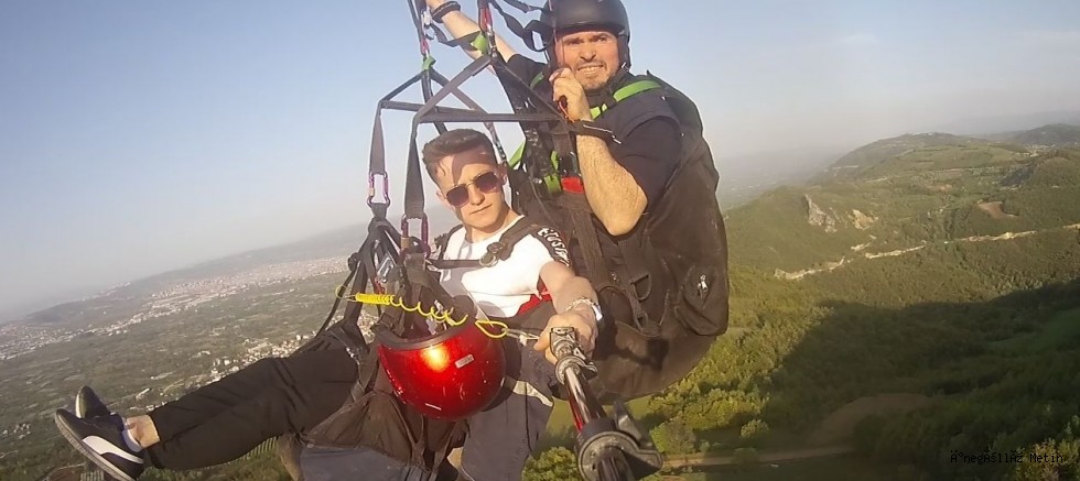 Uçuş sırasında havada kendisini görüntüleyen Keskin, "Evet arkadaşlar Uludağ'dan çıktım. 2 bin 230 metreden fabrikaya uçarak gidiyorum." dedi.