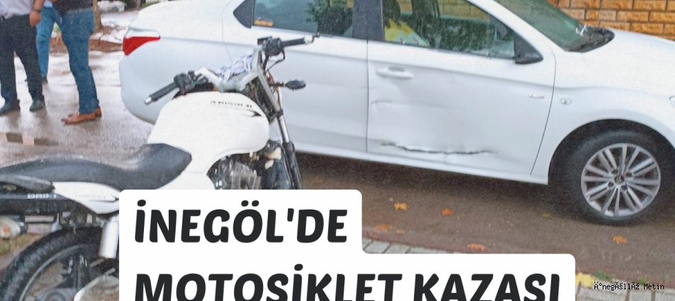 İnegöl Hamidiyi mahallesi Anafartalar caddesi üzerinde 67 AG 841 Plakalı araçla 16 AER 283 pakalı motosiklet çarpıştı çarpmanın etkisiyle yere düşen motosiklet sürücüsü yaralandı.