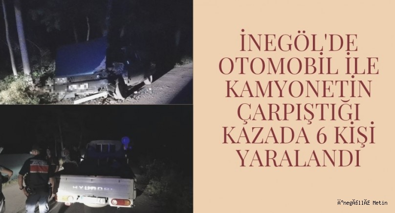 İnegöl otomobil ile kamyonetin çarpışması sonucu 6 kişi yaralandı.