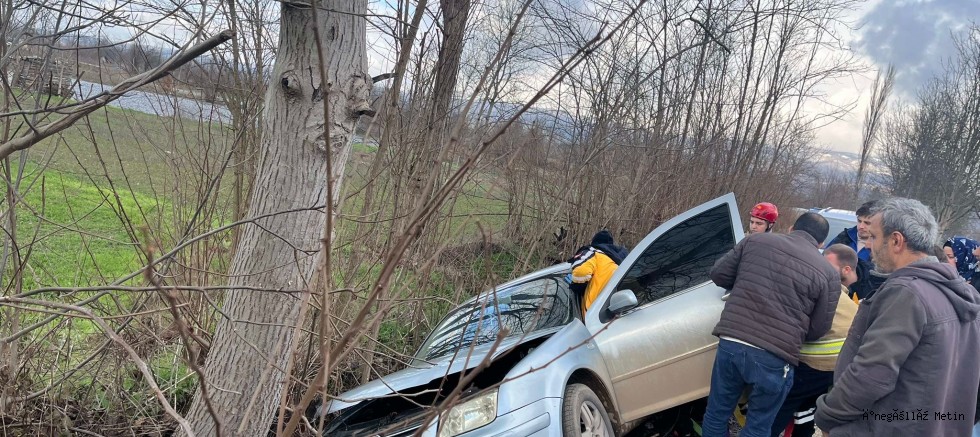 Edinilen bilgilere göre, Sevda T. (44) idaresindeki 16 BVE 284 plakalı otomobil, seyir halindeyken sürücüsünün direksiyon hâkimiyetini kaybetmesi sonucu yoldan çıkarak sulama kanalına düştü. Bir ağaca çarparak durabilen otomobilde sürücü yaralandı.