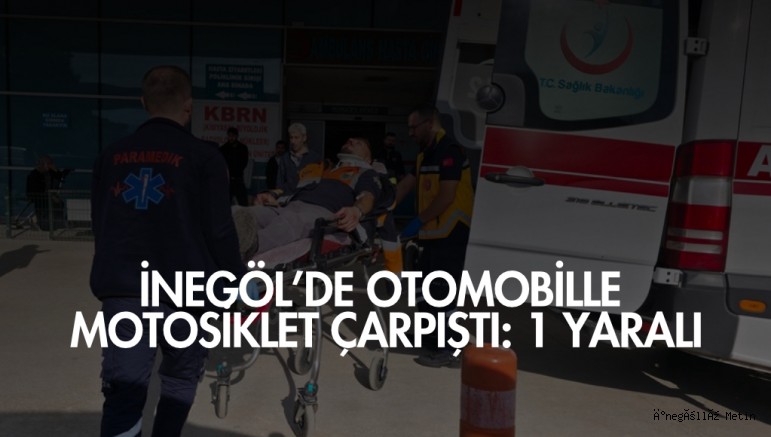 Çarpışmanın etkisiyle motosiklet sürücüsü İlker Y. yaralandı. İhbar üzerine olay yerine 112 Acil Servis ekipleri sevk edildi. Yaralı sürücüye ilk müdahale olay yerinde yapıldıktan sonra, ambulansla İnegöl Devlet Hastanesi’ne kaldırılarak tedavi altına alındı.
