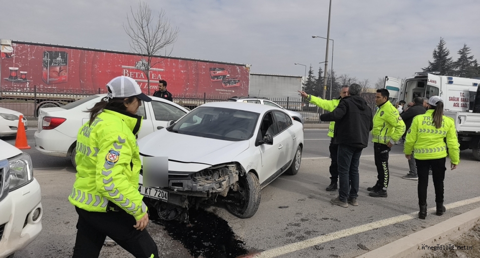 İnegöl ile Alanyurt'u bağlayan köprülü kavşakta meydana geldi. İnegöl'den Eskişehir'e dönüş yapan Figen K. (26) idaresindeki 34 KT 7204 plakalı otomobil, aynı yöne seyreden Muhsin B. (28) idaresindeki 16 BOR 658 plakalı otomobille çarpıştı. Kazada sürücüler yaralandı. Yaralılar kaza yerine sevk edilen ambulansla İnegöl Devlet Hastanesine kaldırıldı. Polis kazayla ilgili tahkikat başlattı.