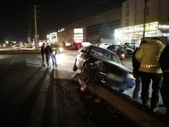 İnegöl’de refüje çarpan aracın sürücüsü yaralandı.