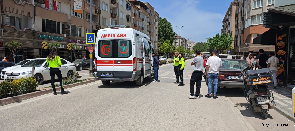 Kaza, Ahmet Akyol Caddesi üzerinde meydana geldi. 20 yaşındaki Yahya Ö. yönetimindeki 16 BDP 827 plakalı motosiklet, 42 yaşındaki Tarık K. idaresindeki 16 T 5543 plakalı ticari taksiyle çarpıştı. Trafiğe kapalı alanda motosiklet kullanan kurye Yahya Ö., çarpışmanın etkisiyle yaralandı.