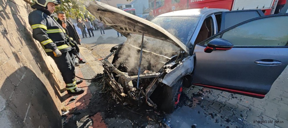 Edinilen bilgilere göre, park halindeki araçların birinde elektrik kontağından çıktığı tahmin edilen yangın, hızla büyüyerek yanındaki araca da sıçradı.