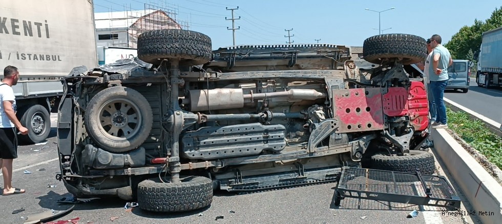 Kaza sonucu cip yan dönerken, direksiyon hâkimiyeti kaybolan TIR cipin önünde kırmızı ışıkta duran 16 ADK 74 plakalı TIR'a çarptı. Kaza sonucu TIR ve cip sürücüsü ile cipte bulunan Mert A., Yusuf.D. Ö. ve Mehmet Ç. (25) yaralandı. Yaralılar haber verilmesi üzerine kaza yerine gelen ambulanslarla İnegöl Devlet Hastanesi Acil Servisine götürülerek tedavi altına alındı.