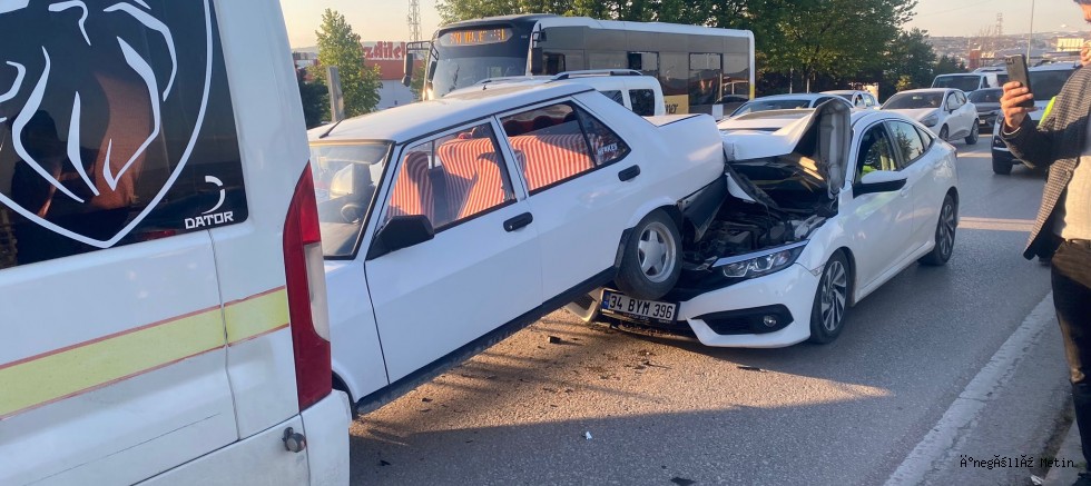 İnegöl'ün köprülü kavşaklarından birinde, yoğun trafiğin olduğu bir saatte zincirleme kaza meydana geldi.