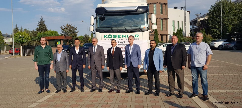 İnegöllü hayırseverlere teşekkür eden İnegöl Belediye Başkanı Alper Taban ise, “Bugün yardım tırımızı göndermek üzere toplanmış bulunuyoruz. Bundan sonra da yaraları sarma çalışmalarımız devam ediyor. İnegöl’de bulunan STK’larımızın desteği ile bölgede ihtiyaç olan mobilya ve sandalye ihtiyaçlarını yardımseverlerin katlıları ile bölgeye göndermiş olacağız. Hayırsever firmalarımıza da çok teşekkür ediyorum. Allah hayırlarını kabul eylesin” şeklinde konuştu.