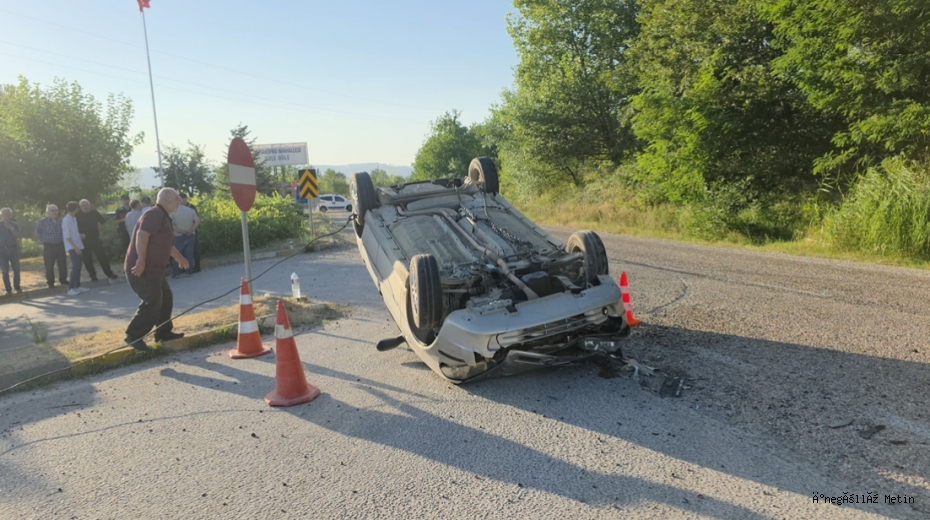 Edinilen bilgiye göre, İnegöl’den Domaniç yönüne giden Cemil A. (47) idaresindeki 34 HT 5026 plakalı su yüklü kamyon, Tahtaköprü Mahallesi’nden yola çıkan Gülsün U. (29) yönetimindeki 16 FE 163 plakalı otomobille çarpıştı. Çarpmanın etkisiyle takla atan otomobil ters döndü.