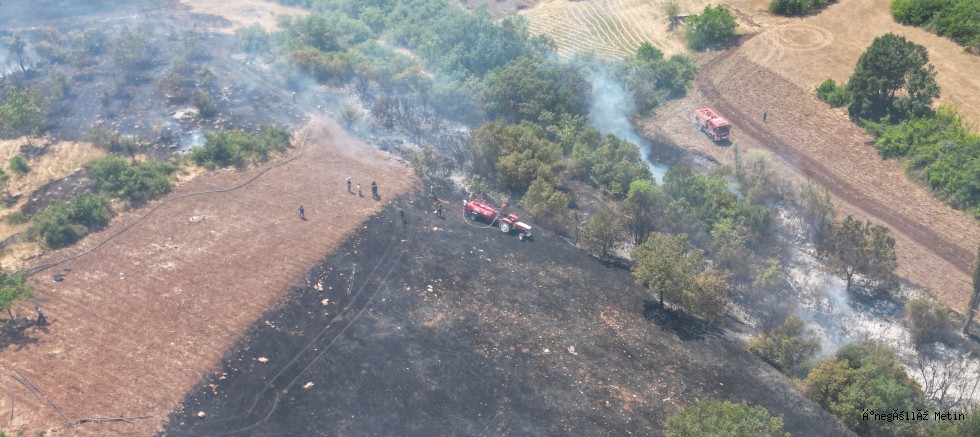 İtfaiye ekipleri tam kadro seferber olurken, izinli ve istirahatli personeller de göreve çağrıldı. Kaymakam Eren Arslan, bölgede incelemelerde bulunarak yangınla ilgili bilgi aldı.