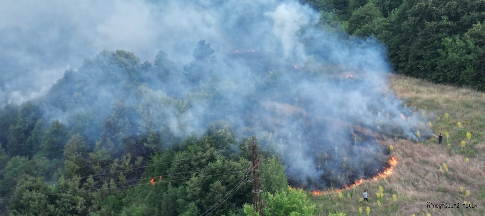 Alevlerin hızla yayılmasıyla birlikte söndürme ve soğutma çalışmaları yoğun şekilde devam ediyor. Ancak bölgedeki engebeli arazi yapısı, ekiplerin müdahalesini zorlaştırıyor.