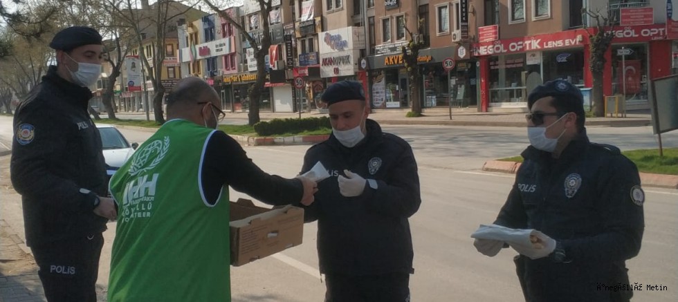 İHH Ekipleri bu kapsamda araçlarla yemek, ve pide dağıtımı gerçekleştirirken, Emniyet, Jandarma ve sağlık çalışanları yapılan bu etkinlikten dolayı İHH İnegöl yetkililerine teşekkür etti.