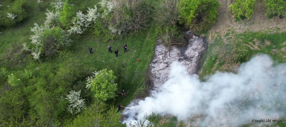 Zorlu arazi koşullarına rağmen ekipler, koordineli bir şekilde çalışarak yangını tamamen kontrol altına aldı. Yangın anı ise dron ile havadan görüntülenerek kayıt altına alındı.
