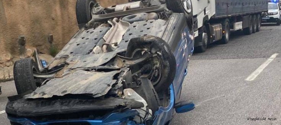 Alınan bilgiye göre Ankara'dan Bursa istikametine seyir halinde olan Şaban A.(61) 44 ABR 196 plakalı otomobilin lastiği patlaması sonucu direksiyon hakimiyetini kaybederek duvara vurarak takla atması sonucu otomobil sürücüsü yaralandı.