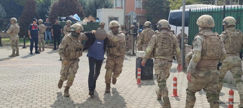 Hastanelerde sağlık kontrolleri yapılan şüphelilerden bazıları İl Jandarma Komutanlığı'ndan, bazıları ise İnegöl Jandarma Komutanlığı'ndan araçlara bindirilerek İnegöl Adliyesi'ne getirildi.