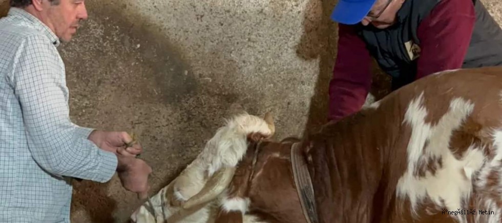 Kırsal Maden Mahallesi'nde ekipler, küpesi düşen büyükbaş hayvanlarının küpeleme işlemini gerçekleştirdi.
