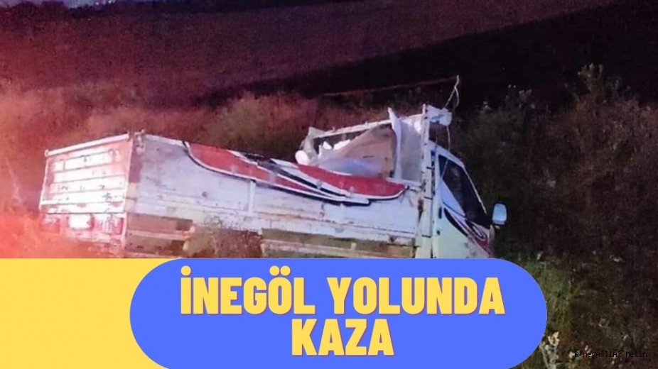 İnegöl istikametinden Yenişehir istikametine doğru seyir halinde olan M. D. idaresindeki 16 ARK 271 plakalı kamyonet, yağışın etkisi kayganlaşan yolda kontrolden çıkarak yol kenarındaki boş araziye uçtu.