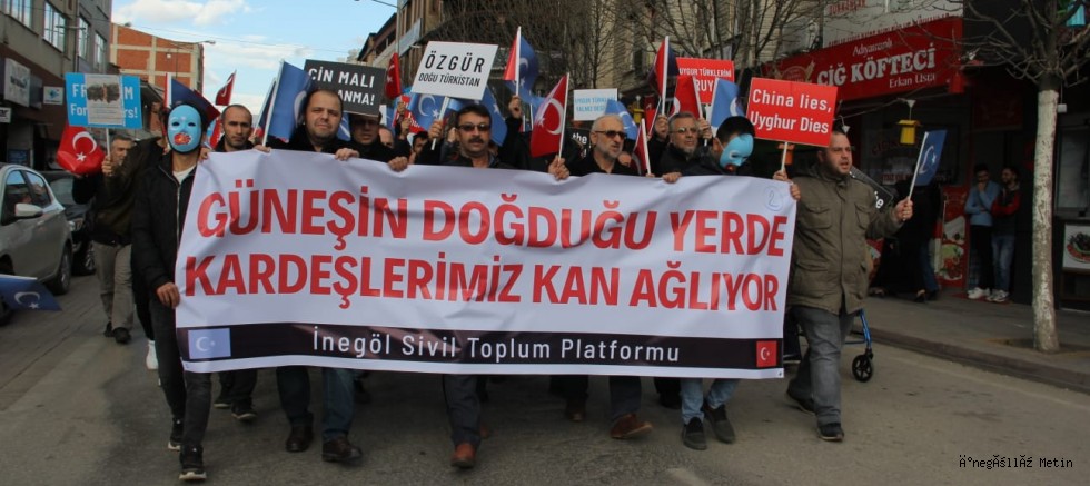 Çin’in Doğu Türkistan Türklerine karşı uyguladığı zulüm ve işkenceler sebebiyle Türkiye’nin dört bir yanında yürüyüşler düzenlenirken, İnegöl’de de vatandaşlar bir araya geldi. İnegöl Tarihi Mehter Takımı’nın da katıldığı Doğu Türkistan yürüyüşüne yüzlerce kişi katılım sağladı. Yürüyüşte katılımcılar ‘Çin zulmüne dur de’, ‘Doğu Türkistan’a özgürlük’ ve çeşitli dövizlerin yanı sıra Doğu Türkistan bayrakları taşıdı. Katılımcılar, ‘Doğu Türkistan yalnız değildir’, ‘Zalimler elbet hesap verecek’ şeklinde sloganlar atıp tekbir getirdi. Milli İrade Meydanı’nda başlayan yürüyüş Atatürk Heykeli’ne kadar devam etti. Kur’an-ı Kerim tilavetinin ardından İnegöl Sivil Toplum Platformu adına konuşma yapan İnegöl İHH Başkanı İlhan Tatlı, “Doğu Türkistan’ı yalnız bırakmadınız, tatil gününüzde, soğuk havaya rağmen Doğu Türkistan’ın yanında olmayı tercih ettiniz. Mazlumun yanında, zalimin karşısında olmayı tercih ettiniz. Aslında çok söze gerek yok. İnegöl her zamanki gibi imtihanını başarılı bir şekilde vermiştir. Tüm dünyaya bir söz söylemiş olduğunu göstermiştir. Çin buraya Sincan diyor. Sincan Çin’in uydurduğu bir şey. Kendileri orayı işgal ettikleri için kurtarılmış diyorlar. Bizim kalbimizde orası Doğu Türkistan’dır. Oranın başkenti Urumçi’dir. Orası 35 milyon nüfusludur. Orayı bir küçük yer gibi dayatıyorlar. 1 milyon 828 bin kilometre alana sahip orası. Çin maalesef bunu bu şekilde yaymaya çalışıyor. Selçuklu ve Osmanlı’nın temeli, Karahanlıların merkezidir. Tarih boyunca birçok İslam alemi, bilim adamı yetişmiştir. Özellikle dinimizi bize öğreten İmam Tibriz’i Doğu Türkistanlı’dır. İbni Sina, Farabi, Kaşkarlı Mahmut, Yusuf Has Hacip gibi büyük devlet adamları Doğu Türkistanlı’dır. Sizce Çin neden Doğu Türkistan’a zulüm ediyor. Sessiz kalarak zalimin sesi değil, sesimizi çıkararak mazlumun sesi olduk. Biz de buradan diyoruz ki ey Çin, Doğu Türkistan’dan defol. Ey Türkistan sen bizim kardeşimizsin. Ey Türkistan sana sahip çıkmak boynumuzun borcudur” dedi.