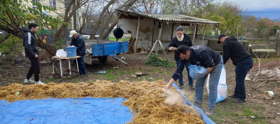 İnegöl'e bağlı kırsal Alibeyköy'de uygulamalı İstiridye Mantarı'nın ilk tohumları da atılmış oldu.