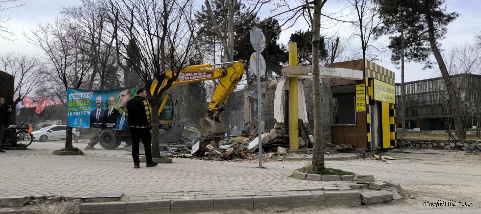 İnegöl’ün sembol yapılarından birine dönüşen Heykel Taksi Durağı, İnegöl Belediyesi’nin meydan projesi çerçevesinde yıkıldı.