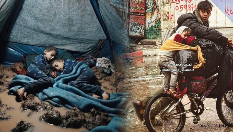 İnegöl'de, İsrail'in Gazze'de gerçekleştirdiği katliamda yaşanan insanlık dramı, en çok paylaşılan iki fotoğraf ile şehir sakinlerini derinden etkiledi. İki çocuğun çamurlu su ile kaplı bir çadırda uyurken çekilen an ve bisikletin arkasına bağlanarak yağmur altında yapılan zorlu yolculuğu gösteren diğer kare, İnegöllülerin adeta isyanına neden oldu.