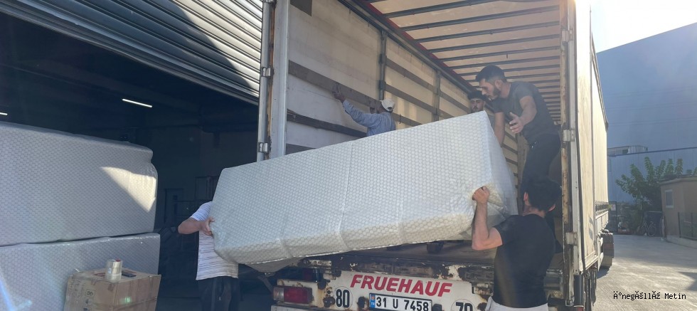 Bu kez de Hatay’da konteynırlarda kullanılmak üzere ve yine İnegölspor camiası adına çekyatlarımızı tırımıza yükledik, tırımız bölgeye 18:00 itibariyle yola çıktı.