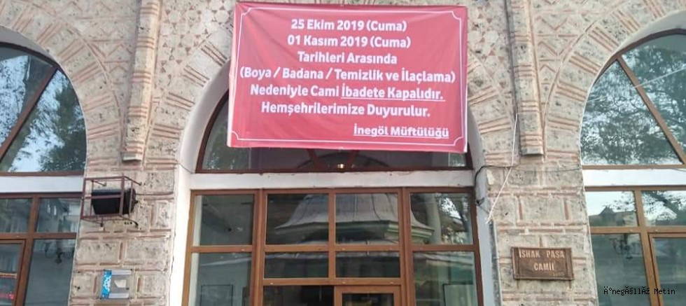 Yaklaşık bir hafta boyunca ibadete kapalı olacak İshakpaşa Camii, 1 Kasım Cuma günü, kılınacak olan Cuma Namazı ile ibadete açılacak.