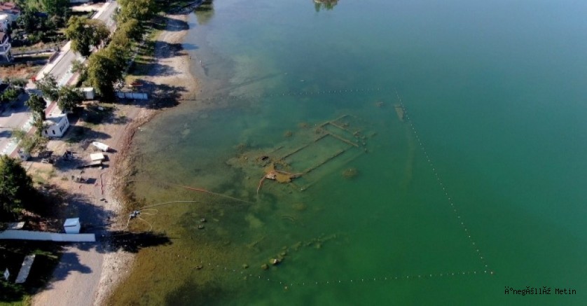Bursa’nın İznik ilçesindeki gölün 25 metre açığında yaklaşık 2 metre derinlikteki, bin 500 yıl önce Aziz Neophytos adına inşa edildiği düşünülen ve su altı arkeoloji müzesine dönüştürülmesi planlanan bazilikanın bazı kalıntıları suların çekilmesiyle görünür hale geldi.