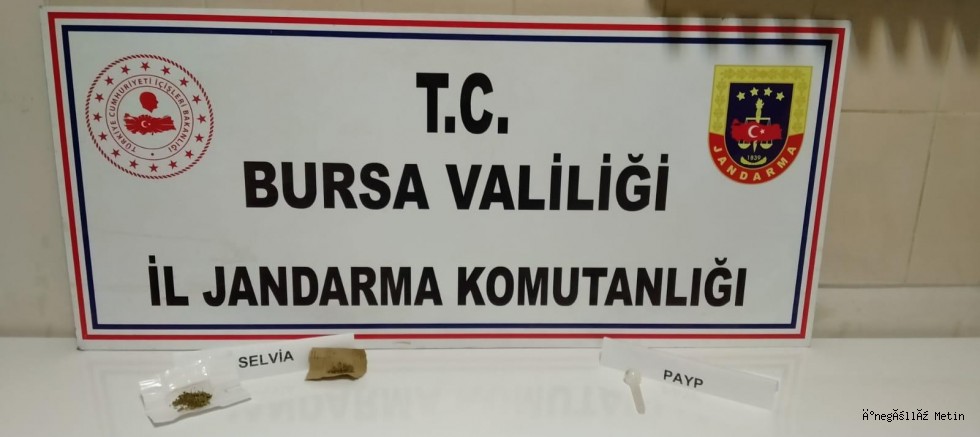Edinilen bilgilere göre İnegöl’e bağlı kırsal Şipali Mahallesi’nde meydana geldi. Jandarma ekipleri, şüphelendikleri bir aracı durdurarak araç içerisinde bulunan Sahsın ile yolcu olarak bulunan şahısların kaba üst aramasında beyaz kâğıda sarılı paket içerisinde Selvia olduğu değerlendirilen 9 gram uyuşturucu madde ve uyuşturucu madde tüketiminde kullanılan payp olarak tabir edilen cam aparat ele geçirildi.