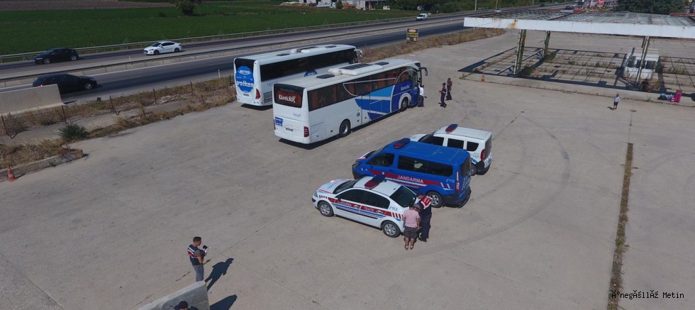 Bursa İl Jandarma Komutanlığı Ekipleri Bursa-İzmir Otoyolu üzerinde havadan trafik denetimi gerçekleştirerek karayolunda seyreden sürücü ve yolcuları uyardı. Özellikle son dönemlerde meydana gelen otobüs yangınlarıyla alakalı hassasiyet gösteren ekipler, otobüsleri durdurarak yangın tüplerini kontrol etti.