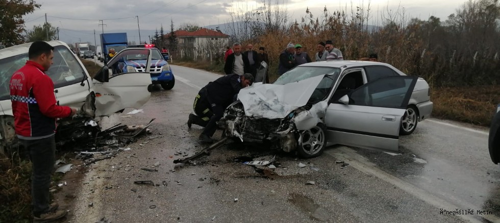 Çarpışmanın etkisiyle savrulan araçlarda bulunan sürücüler ve 16 ACJ 082 plakalı otomobilde yolcu konumunda bulunan Orhan Ç. ile 16 AE 283 plakalı kamyonete yolu konumunda bulunan Oktay Ü. yaralandı.