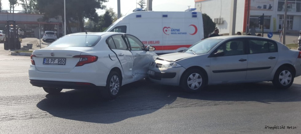 Edinilen bilgilere göre kaza Bursa-Ankara karayolu üzerinde meydana geldi. Bursa’dan Ankara istikametine seyir halinde olan İsmail S.(52) idaresindeki 16 PE 757 plakalı otomobil ile aynı istikametten gelip Küçük Sanayi Ağaç İşlerine doğru dönmek isteyen Serkan E. idaresindeki 16 PF 960 plakalı otomobil çarpıştı. Çarpışmanın etkisiyle sürüklenen 16 PF 960 plakalı aracın sürücüsü Serkan E.(25) ile diğer araçta yolcu konumunda bulunan Ömer A.(74) yaralandı.