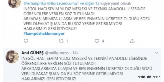 İnegöl hacı Sevim Yıldız meslek Eğitim kampüsü sosyal medyadan tepkili mesaj verdi Yetkilierden ses çıkmaması velilerde tepki gösterdi yemek ulaşım ücretsiz olacaktır verilen sözler tutulmadı diye sosyal medyada Gündem oldu