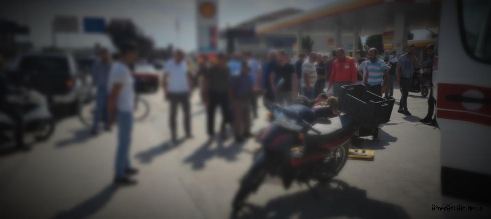 Kaza sonucu ağır şekilde yaralanan motosiklet sürücüsünün yardımına akaryakıt istasyonu görevlileri koştu.