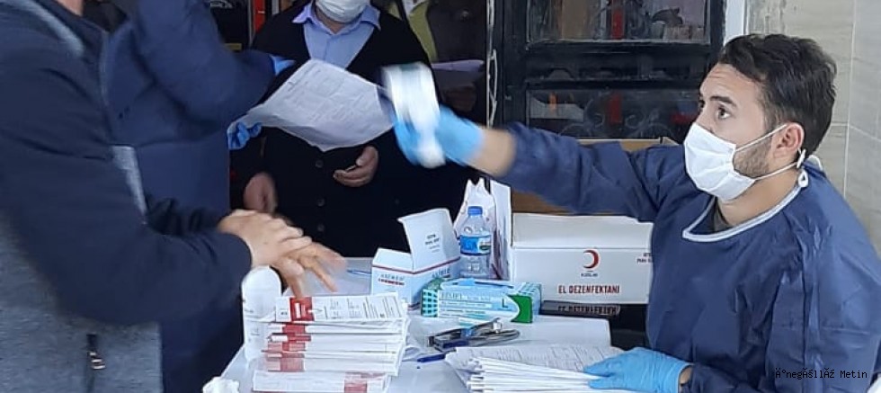 Anadolu İmam Hatip Lisesi çok amaçlı salonunda başlatılan kan bağışı kampanyasında coronavirüs tedbirleri kapsamında vatandaşlar sosyal mesafe kuralına uyarak salona alınıyor.