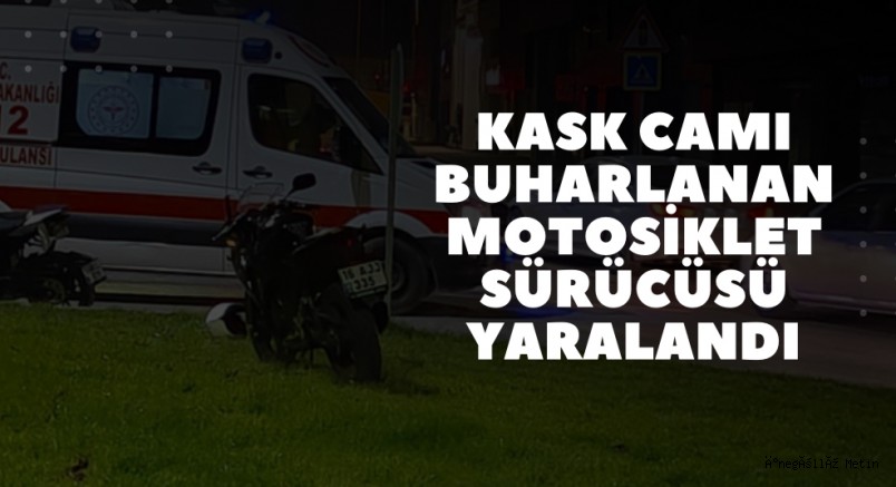 Edilen bilgiye göre inegöl Mahmudiye Mahallesi Ertuğrul Gazi caddesi üzerinde meydana gelen motosikletin Kask camının buhar yapması sonucu direksiyon hakimiyetini kaybeden sürücü Barış H.(22) idaresindeki 16 AJJ 335 plakalı motosiklet sürücüsü metrelerce uçarak döner kavsaktaki babaya düşerek yaralandı.