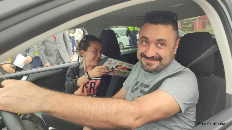 Durdurulan sürücülerle önce bayramlaşan Kaymakam Arslan, ardından da sürücülerin trafik kurallarına uyması ve özellikle de emniyet kemerinin kesinlikle takılması ile ilgili bilgiler verdi.