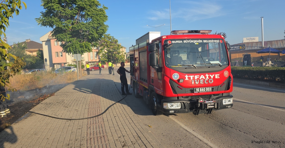 Boş alandan yükselen dumanları fark eden çevre sakinleri ve bölgede görev yapan trafik polisleri, yangına kendi imkanlarıyla müdahale etmeye çalıştı. Ancak alevlerin büyümesi üzerine durum 112 Acil Çağrı Merkezine bildirildi. İhbar üzerine olay yerine ulaşan İnegöl İtfaiye ekipleri, yangını kısa sürede kontrol altına alarak söndürdü.