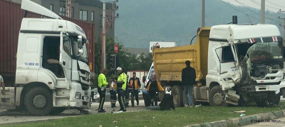 Aziz B. (45) yönetimindeki 16 MEK 96 plakalı tır, Bursa-Ankara kara yolu Barakfakih mevkisinde Sıddık Ş'nin kullandığı 16 ANK 666 plakalı kamyona çarptı. Çarpmanın etkisiyle savrulan kamyon, sinyalizasyon direğine çarparak durabildi.