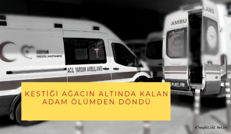 Alınan bilgiye göre inegöl'e Bağlı Elmaçayır mahallesinde ormanlık alanda kestiği ağacın altında kalan İsmail H.(51) arkadaşları tarafından ilk müdahaleyi yaparak 112 den yardım istediler.