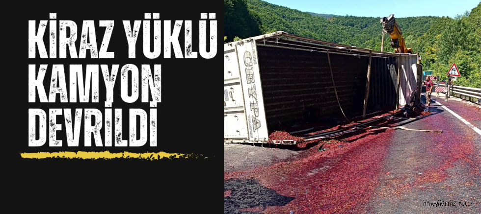 Alınan bilgilere göre olay, Bursa Ankara Karayolu Mezitler bölgesinde meydana geldi. Ramazan O. idaresindeki 42 RN 999 plakalı kiraz yüklü kamyon, seyir halindeyken sürücüsünün direksiyon hakimiyetini kaybetmesinin ardından devrildi.