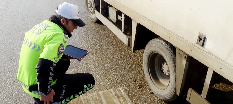 Uygulama kapsamında araçlar tek tek durdurularak lastikleri kontrol edildi.