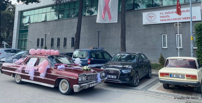 Farkındalık etkinliği kapsamında klasik bir otomobil, pembe kurdele ve balonlarla süslenerek İnegöl sokaklarında gezdirildi. Etkinlikle, vatandaşların meme kanserinde erken teşhisin önemine dikkat çekilmesi hedeflendi.