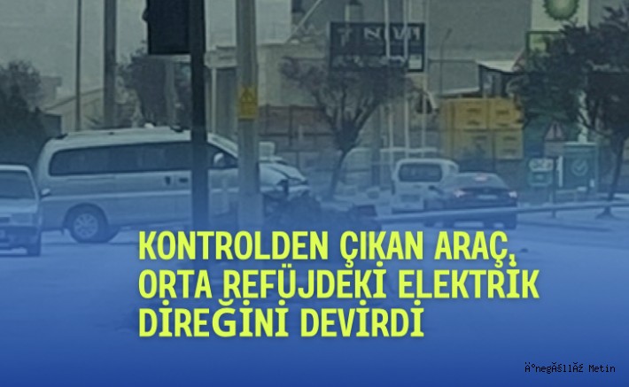 Kontrolden çıkan otomobil, orta refüjde bulunan elektrik direğine çarptı.