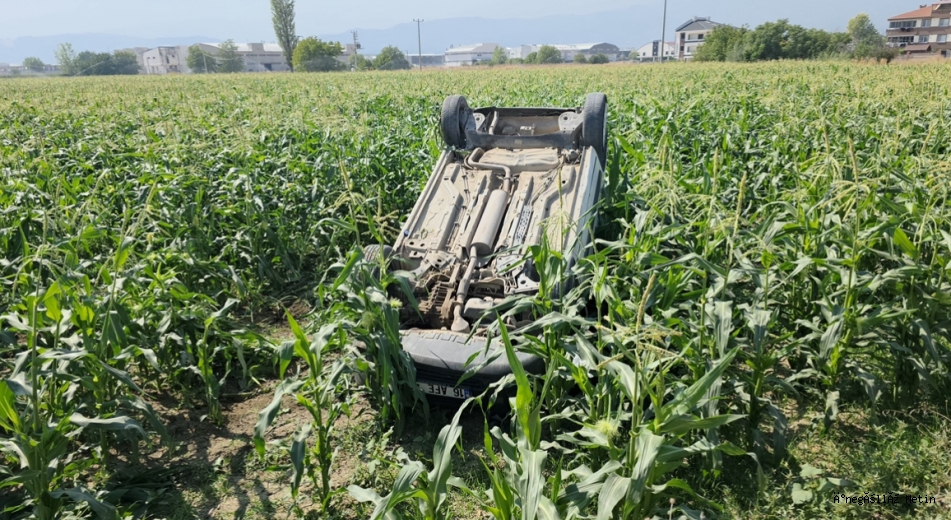 Kaza saat 12.30 sıralarında Alanyurt ile Akhisar Mahallesini bağlayan beton yolda meydana geldi. Akhisar mahallesine seyreden Servet A.(40) yönetimindeki 16 AFE 491 plakalı hafif ticari araç, virajda sürücüsünün kontrolünden çıkarak mısır tarlasına takla atarak ters durdu. İhbarla kaza yerine 112 ve polis ekipleri sevk edildi. Sürücü, isteği üzerine sağlık ekiplerince ayakta tedavi edildi.