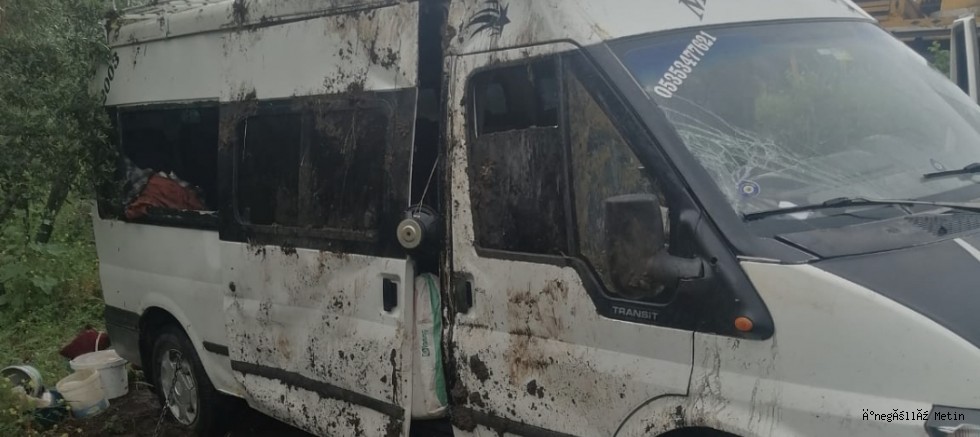 Öte yandan devrilen minibüs, çevici yardımı ile bulunduğu noktadan çıkarıldı.