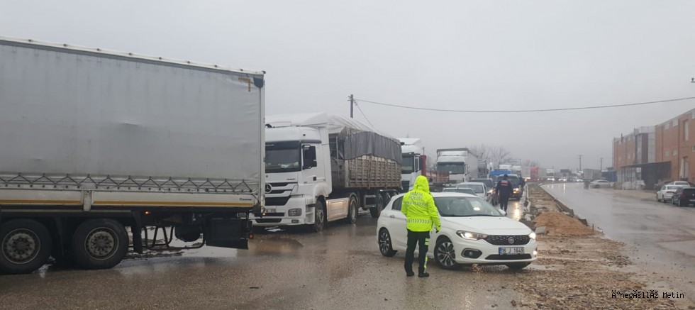 Mezitler bölgesinde sabah saatlerinde başlayan yağmur, öğleden sonra yerini şiddetli kara bırakınca sürücüler zor anlar yaşadı. Akşam saat 16:00-17:00 sularında denetimleri sıklaştıran bölge trafik ekipleri ağır tonajlı arabaların Mezitler bölgesine gitmesine izin vermedi.